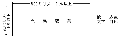 4 禁煙、裸火使用禁止及び危険物品持込禁止を複数表示する場合は、それぞれの標識の文字及びシンボルを組み合わせた一つの標識とすることができる。この場合における文字及びシンボル部分の寸法は、2に準ずる。